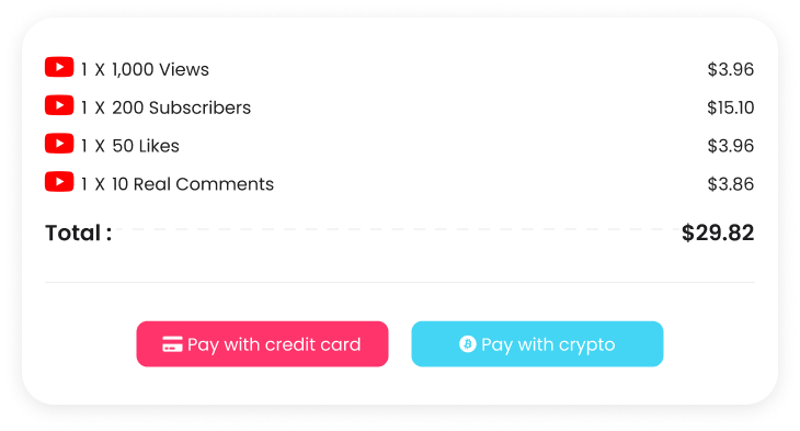 Paste or search the name of your YouTube Video, then choose the amount of views, subscribers, likes and comments suitable for your Youtube growing campaign.